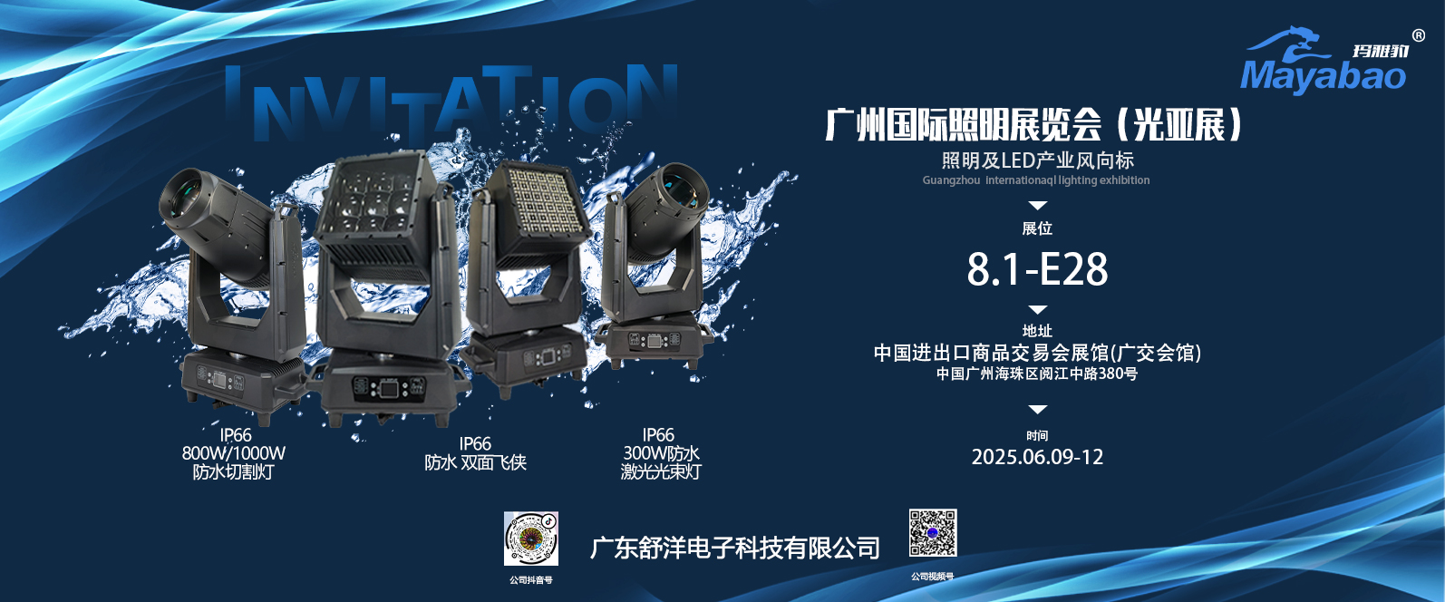广东舒洋电子科技有限公司成立于 2014 年,坐落在佛山市南海区狮山镇官窑新海东工业园 32 号,专注于舞台灯光、文旅灯光的研发、生产、销售。具备专业的研发团队,获得过多项专利证书和软著证书。服务于影剧院项目、文旅项目、演出租赁和娱乐项目。